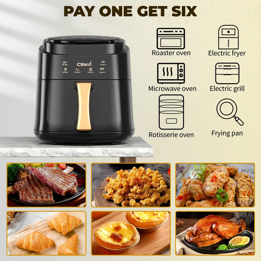 Fryer Th6.3 QT Large Capacity Air Fryer Touch Screen Smart Air at Crisps, Roasts, Reheats, & Dehydrates,Including Air Fryer Paper Liners 50Pcs,Black