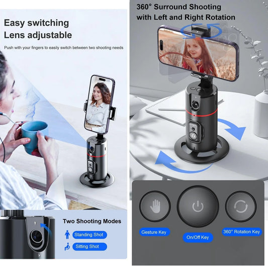 Auto Face Tracking Phone Holder Tripod, No App Required, 360° Rotation Smart Face Body Tracking Tripod Selfie Phone Camera Mount Cell Phone Stand for TIK Tok, Vlog, Live Streaming, Youtube Video